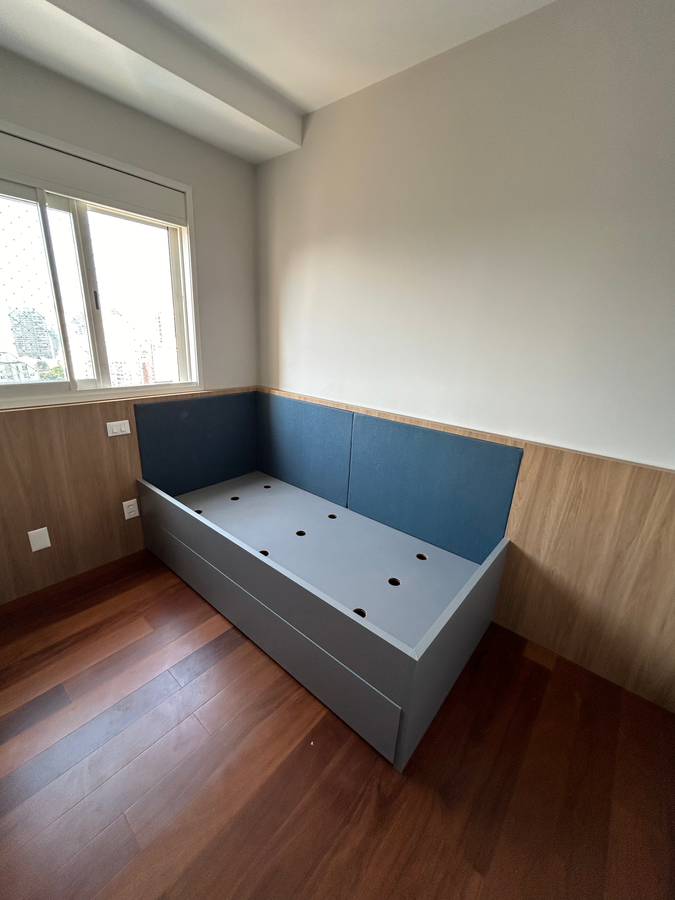 Neste apartamento, realizamos a reforma completa dos estofados e a confecção de novas cabeceiras de cama, trazendo um novo ar aos ambientes com elegância e conforto.